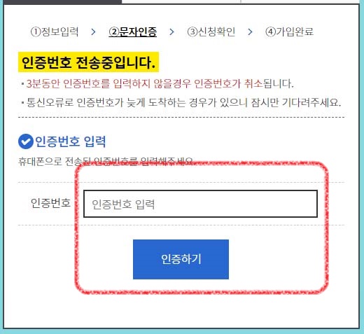 인증번호를 받고 입력 후 인증하기 버튼을 클릭합니다.