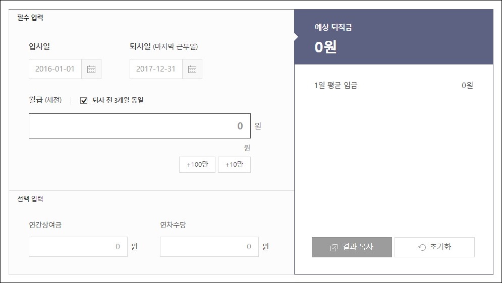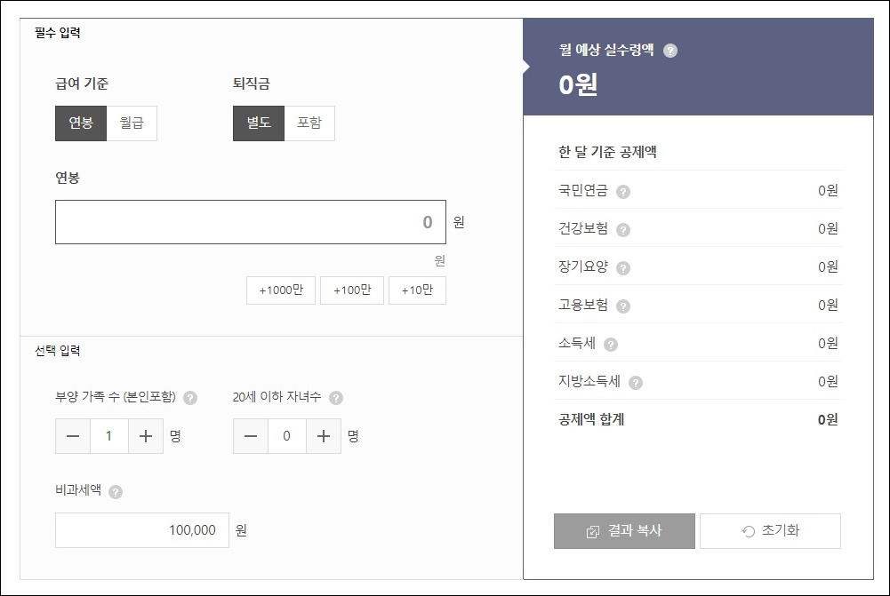 사람인 연봉 계산기와 퇴직금 계산기는 모의계산이기 때문에 실제 수령금액과는 100% 일치 할 수는 없지만 대략적으로는 알 수 있기 때문에 간편하게 이용할 수 있습니다.