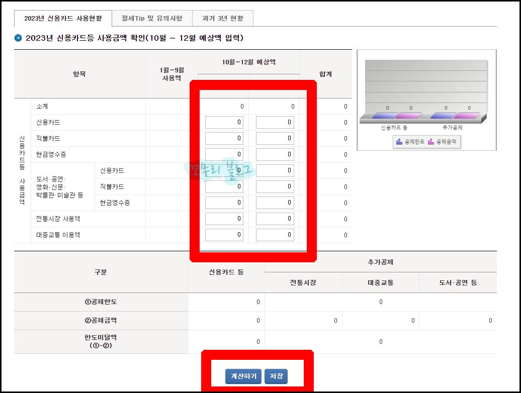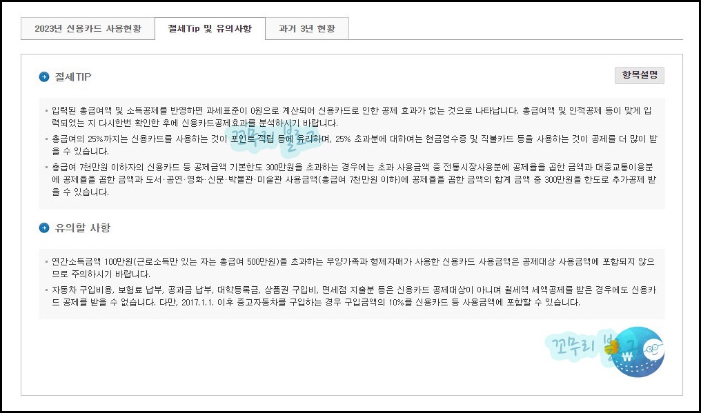 화면 중간에 보면 절세팁 유의사항을 확인할 수 있습니다. 그냥 지나치지 말고 읽어보고 팁을 활용하면 좋습니다.
