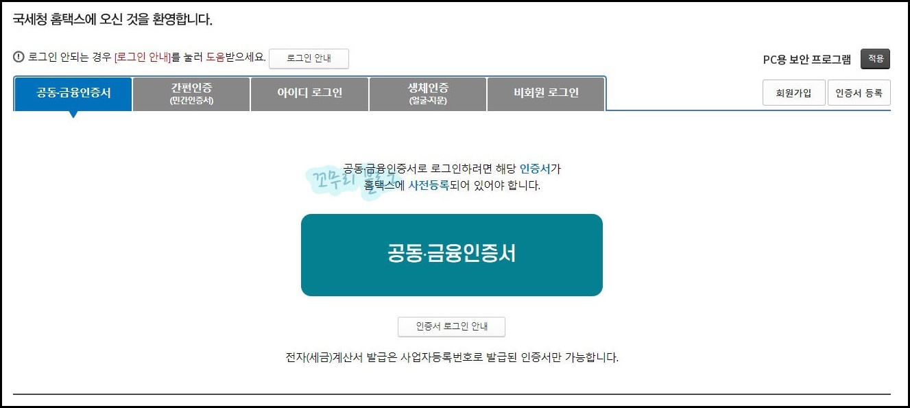이제 국세청 홈택스에 자신의 공인인증서 등록이 완료되었으니 다시 한번 로그인을 해주면 됩니다.